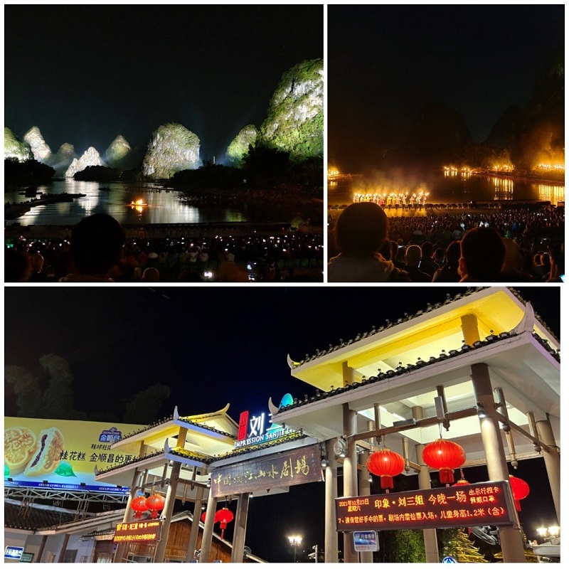 晚餐結(jié)束后,一同觀賞由導(dǎo)演張藝謀導(dǎo)演的全世界第一部全新概念的“大型山水實(shí)景演出”——印象劉三姐,欣賞史無(wú)前例的桂林漓江風(fēng)情,感受大型經(jīng)典山歌、民族風(fēng)情、漓江漁火等元素與方圓兩公里的漓江水域,十二座背景山峰的山水劇場(chǎng)的有機(jī)融合;漓江的水,桂林的山,成功詮釋了人與自然的和諧關(guān)系。