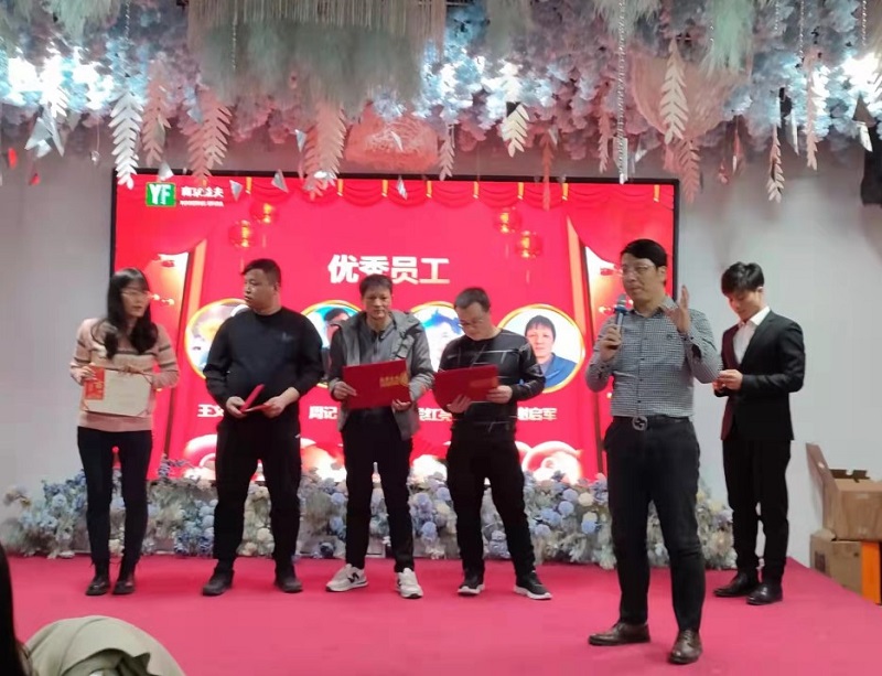 南京益夫發(fā)展的每一步,取得的每一項(xiàng)成績都離不開同事們的努力和付出,為激勵(lì)大家持續(xù)奮進(jìn),再接再厲,公司領(lǐng)導(dǎo)評(píng)選出8位優(yōu)秀員工作為大家的代表,他們?cè)谶^去一年里表現(xiàn)突出,勤懇奮進(jìn),是大家的榜樣,是公司的驕傲。入選的優(yōu)秀員工每人都獲得榮譽(yù)證書和1000元的現(xiàn)金紅包。他們分別是銷售部的鄧榮進(jìn)、辦公室的項(xiàng)秀珍、實(shí)驗(yàn)室的朱雪峰、實(shí)驗(yàn)室的嚴(yán)正文、財(cái)務(wù)室的王文慧、生產(chǎn)部的周記貴、生產(chǎn)部的侯紅亮、生產(chǎn)部的謝啟軍。由張總和劉總分批為他們頒獎(jiǎng),獲獎(jiǎng)?wù)邆円来伟l(fā)表獲獎(jiǎng)感言,對(duì)公司表達(dá)感激和深切的祝愿。
