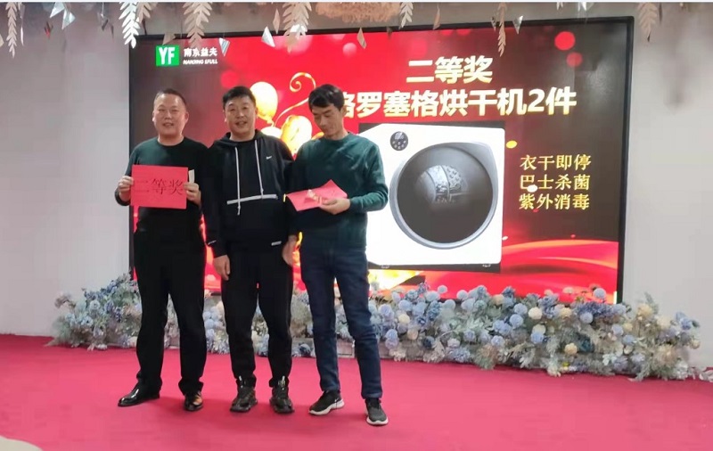 進(jìn)行簡單的餐敘交流后就進(jìn)入了熱鬧的年會(huì)環(huán)節(jié),公司員工踴躍報(bào)名參加的年會(huì)表演受到大家一致好評(píng),每位表演者都情緒激昂,帶動(dòng)了整個(gè)晚會(huì)的活力和氛圍,表演者來自公司的不同的年齡段,從50后到90后,代表不同的時(shí)代人,也抒發(fā)了不同年代的情懷。即使唱歌的水平各有參差,但帶給我們的驚喜和欽佩是同等的。抽獎(jiǎng)環(huán)節(jié)和有獎(jiǎng)競(jìng)猜環(huán)節(jié)更是將年會(huì)的氣氛推向高潮,抽獎(jiǎng)環(huán)節(jié)共設(shè)置三輪,獎(jiǎng)品分別是:一等獎(jiǎng)華為手機(jī)1份、二等獎(jiǎng)滾筒烘干機(jī)2份、三等獎(jiǎng)美的取暖器6份,互動(dòng)獎(jiǎng)品提供了藍(lán)月亮洗衣液共10份,每個(gè)人還獲得一份禮包作為伴手禮。