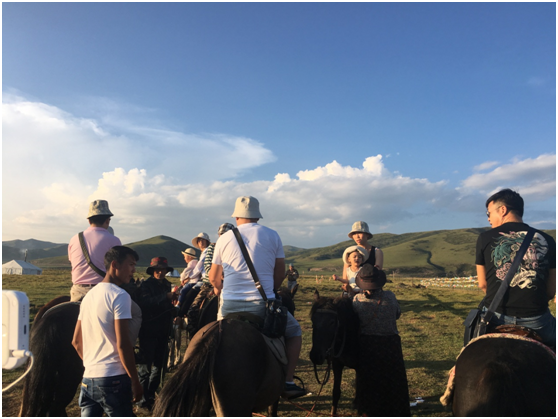 隨后,我們走進蒙古包,品嘗了土牛羊火鍋,手抓肉、青稞餅、酥油茶、草原騎馬。