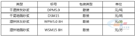 25181-2010 預(yù)拌砂漿》并結(jié)合市場使用情況選擇代表規(guī)格品。